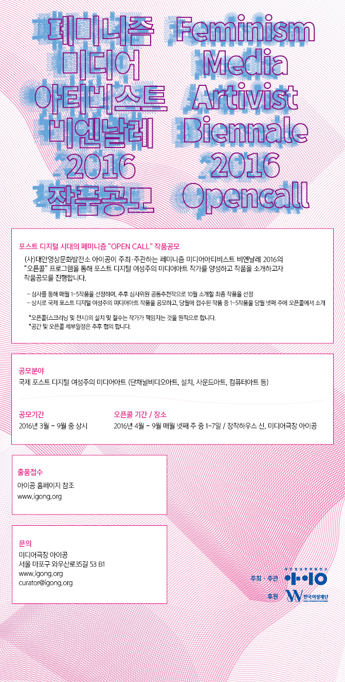 (»ç)´ë¾È¿µ»ó¹®È¹ßÀü¼Ò ¾ÆÀ̰øÀÌ ÁÖÃÖ·ÁÖ°üÇÏ´Â Æä¹Ì´ÏÁò ¹Ìµð¾î¾ÆÆ¼ºñ½ºÆ® ºñ¿£³¯·¹ 2016ÀÇ “¿ÀÇÂÄÝ” ÇÁ·Î±×·¥À» ÅëÇØ Æ÷½ºÆ® µðÁöÅÐ ¿©¼ºÁÖÀÇ ¹Ìµð¾î¾ÆÆ® ÀÛ°¡¸¦ ¾ç¼ºÇϰí ÀÛǰÀ» ¼Ò°³ÇϰíÀÚ ÀÛǰ°ø¸ð¸¦ ÁøÇàÇÕ´Ï´Ù.