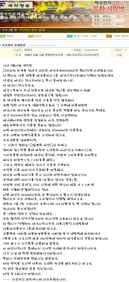 ¹Ú»ó¾ðÀÇ ¹®È­ »ç¶û¹æ > ¼­ÁÖÈñÀÇ ¹®È­ÇöÀå
